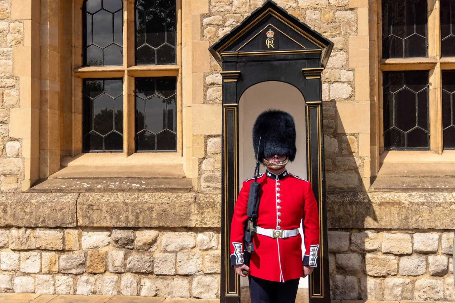 The building is “guarded” by Royal Household Guards, but the real security is the massive modern thick walls. You are basically walking into a giant bank safe.