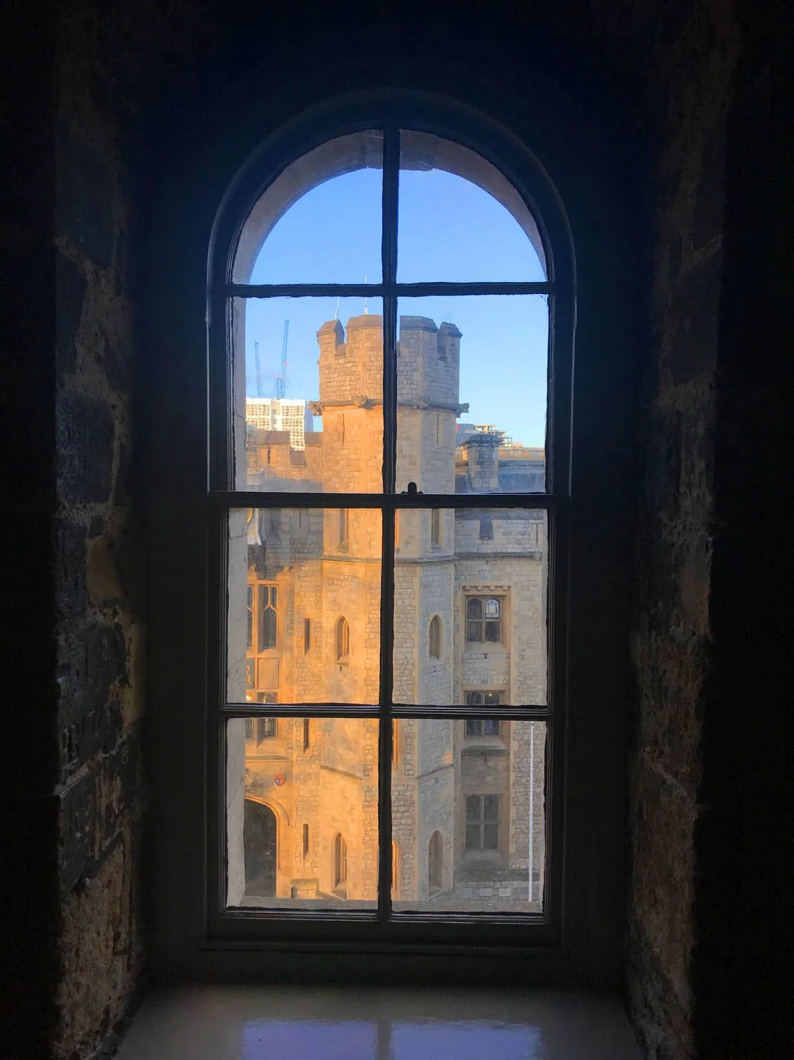 View out a window at the White Tower.
