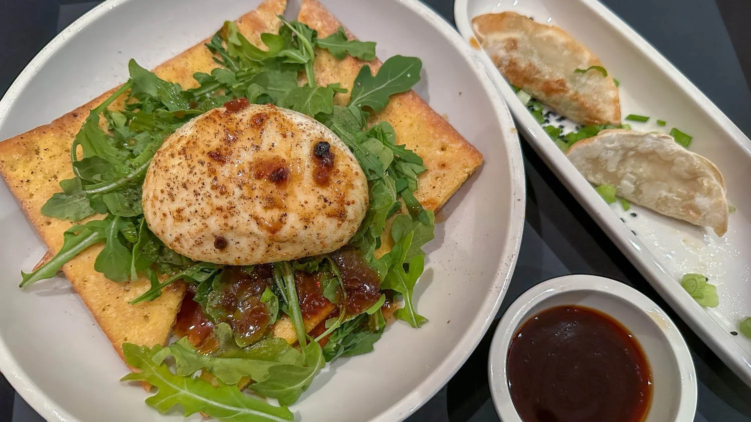 Burrata with fig jam and a side of dumplings was an excellent treat with a drink at the bar.