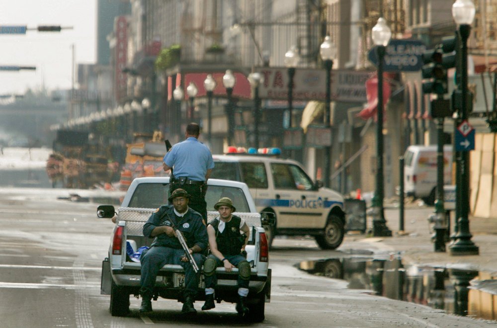 Police officers patrol in New Orleans after Hurricane Katrina. Photo by John O’Boyle / The Empty Nest Explorers