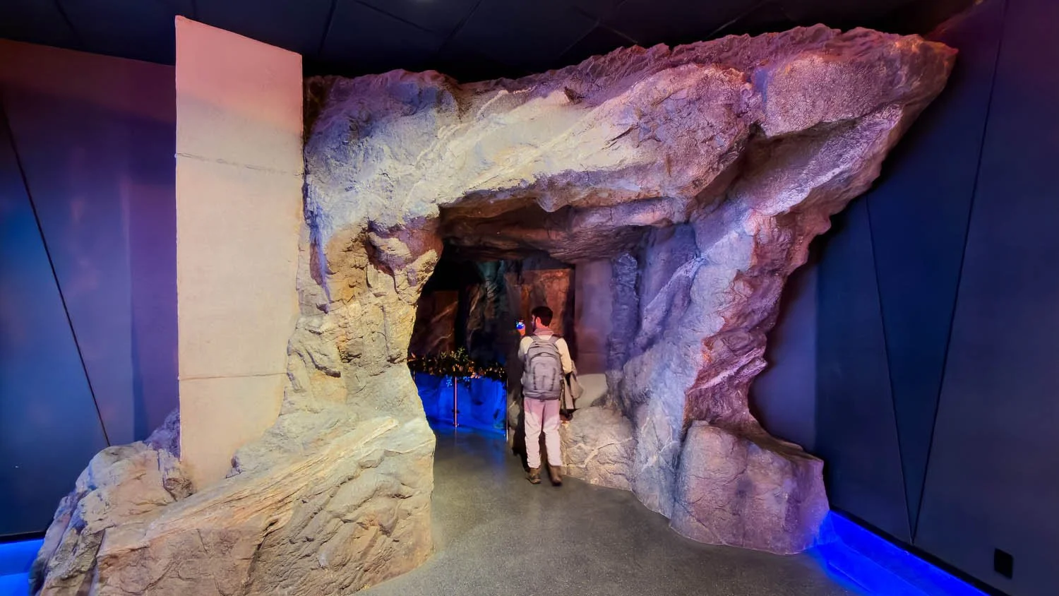 The Foundations Room is designed to resemble a cave carved from bedrock, symbolizing the tower’s foundation